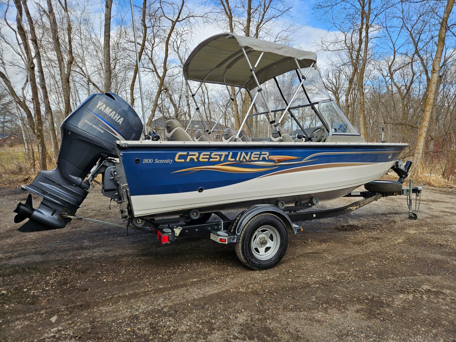 2005 Crestliner serenity 1800 150Hp Yamaha 4stroke with 250hr One owner 6 seats Bimini top Snap on cover Flip up cushions Large rear live well EZ loader trailer Fish finder Spare tire Life jackets included